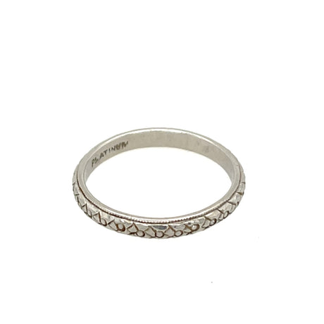 Antique Early 20th Century Platinum Band Ring with Engraved Design